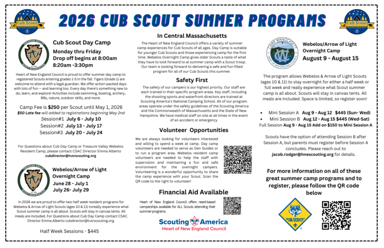 - For Cub Scout Adventure Camp and Webelos Resident Camp at TVSR please email cubdirector@tvsrscouting.org